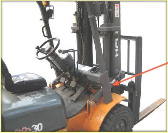 在叉车结构图片中,箭头所指向的零部件是?()