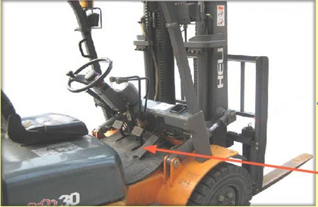 在叉车结构图片中,箭头所指向的零部件是?()
